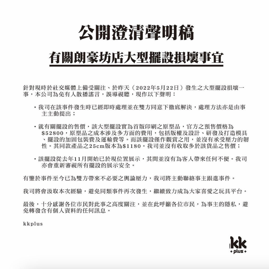 玩具店也说,该摆设从去年11月开始已于现位置展示,期间并没有为客人带来任何不便。“我方将会吸取本次经验,避免同类事件再次发生”。