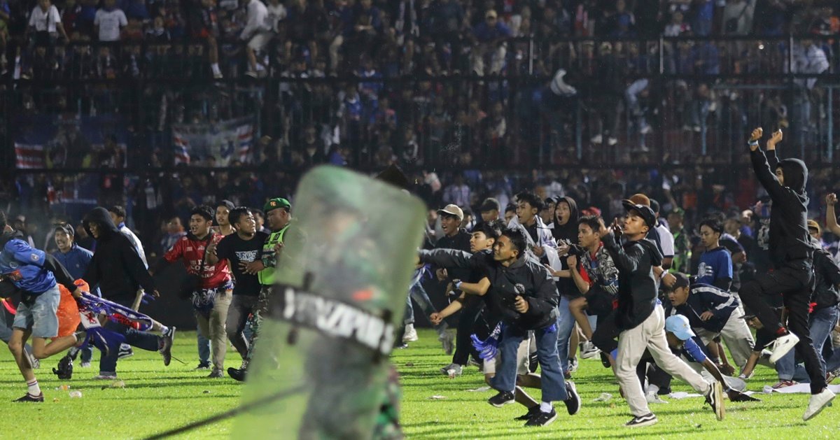 这场比赛是在东爪哇省马琅县的甘朱鲁汉体育场举行,主队阿雷马以2比3败给泗水队后,发生暴乱和踩踏事件,死者当中包括两名警员和数名儿童。这场暴乱也是亚洲足坛罕见的,印尼超级联赛共有18队,阿雷马暂居第9位,泗水第10位。