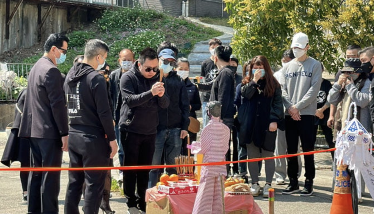 接着,死者的家人中午再到大埔龙尾村肢解案现场进行路祭,过程中,蔡天凤母亲难掩伤痛,倒在在女婿Chris怀中抽泣。