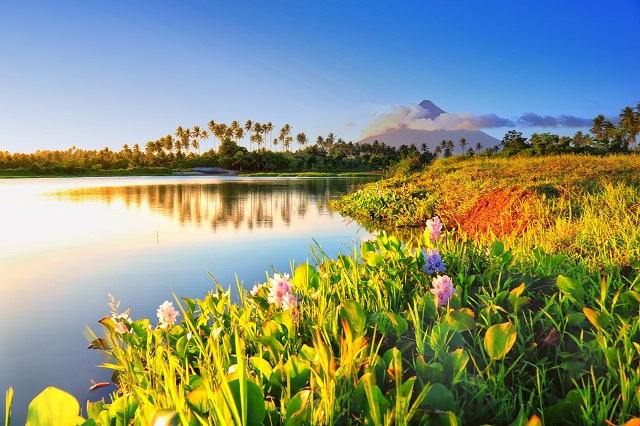 马荣火山高达2463米,像一个巨大三角形蜡烛座耸立在椰林和稻田中间,而且马荣火山那个几乎完美的圆锥形山体,经常被人拿来和日本的富士山比较,就让它获得了“世界上最完美火山”的美名。
