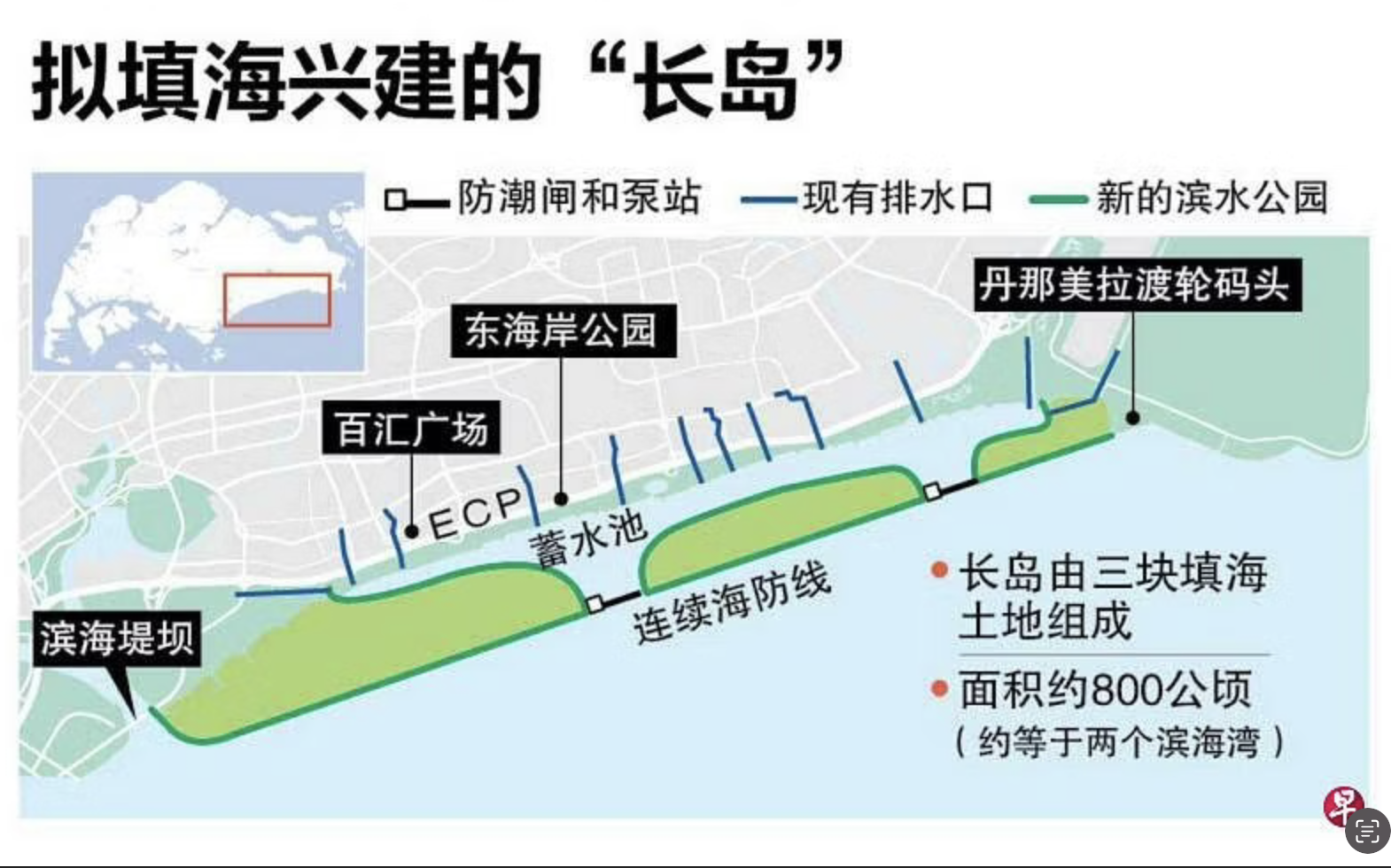 新加坡政府宣布,将在狮城东海岸水域填海造岛,面积比滨海湾大一倍,名为“长岛”(Long Island)。