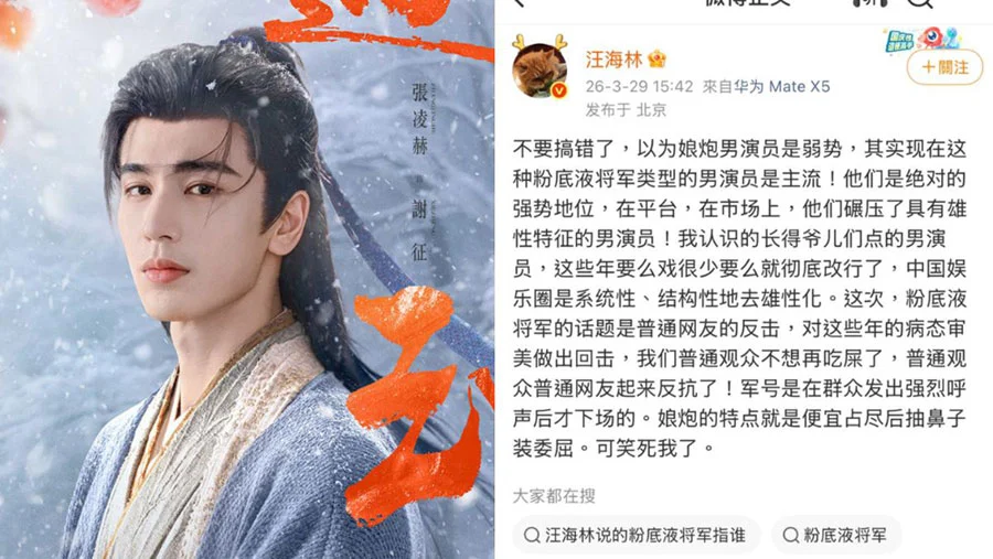 尽管如此,另一方面剧集也同时引发中国舆论争议,张凌赫因造型精致,被部分网民调侃为“粉底液将军”。