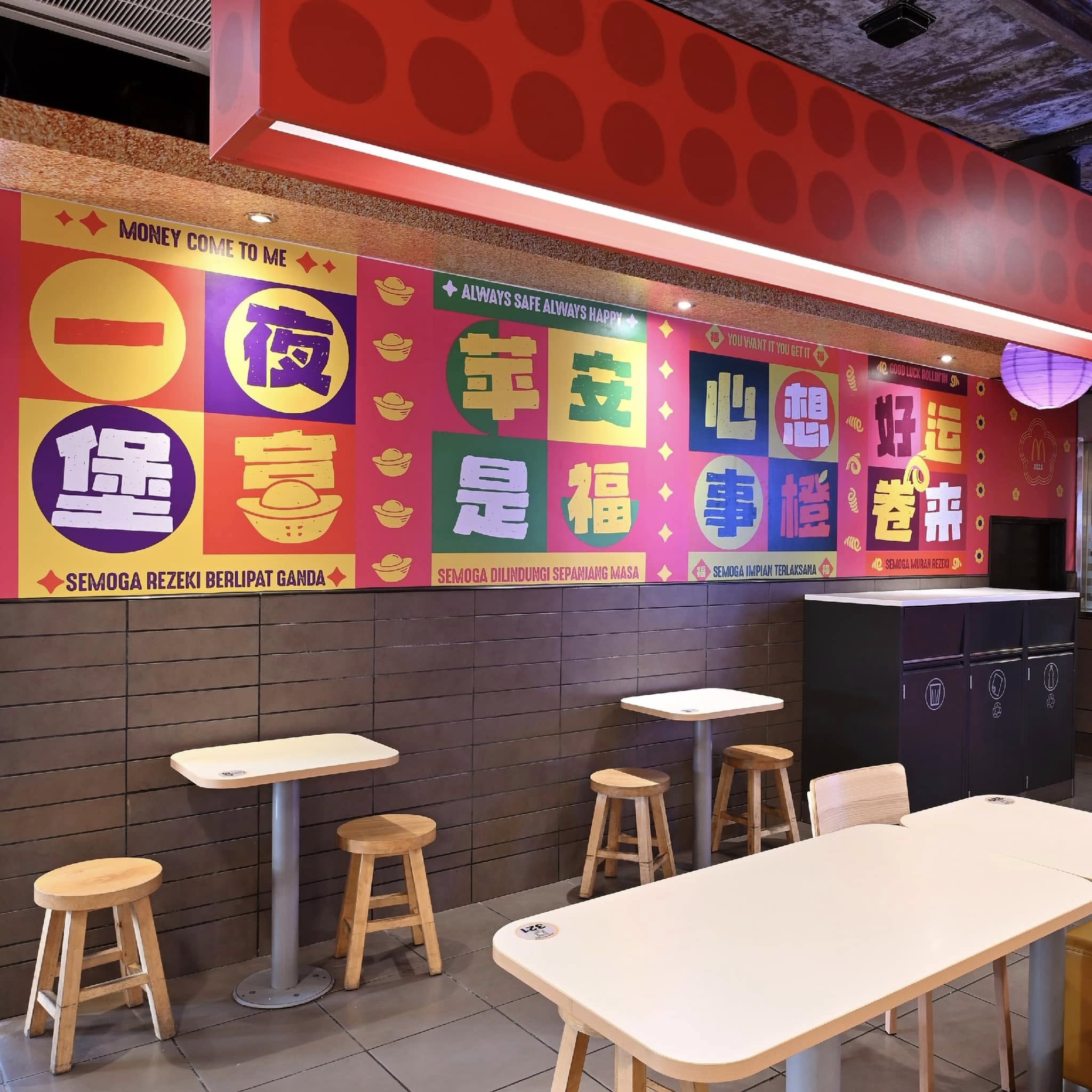 新年将至,年味越来越浓,不仅各大商场换上新年装饰,麦当劳快餐店也披春装,大红灯笼高高挂,满墙吉祥祝福语,意外成了各族的热门打卡点。