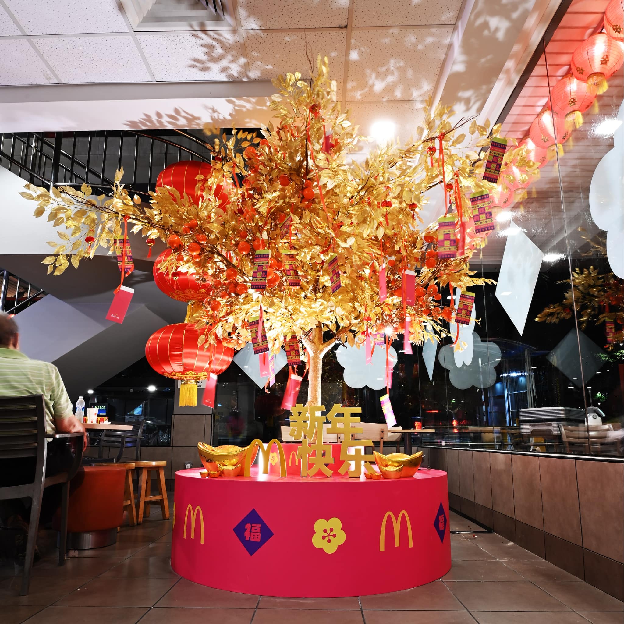 麦当劳配合农历新年来临,首次隆重布置,全国仅有3间分行被选中进行新年布置,分别是在雪州斯里白沙罗(Bandar Sri Damansara DT)、马六甲哥打拉沙马那Kota Laksamana DT及槟城青草巷(Greenlane DT)分行,新年布置会持续至农历十五元宵节。