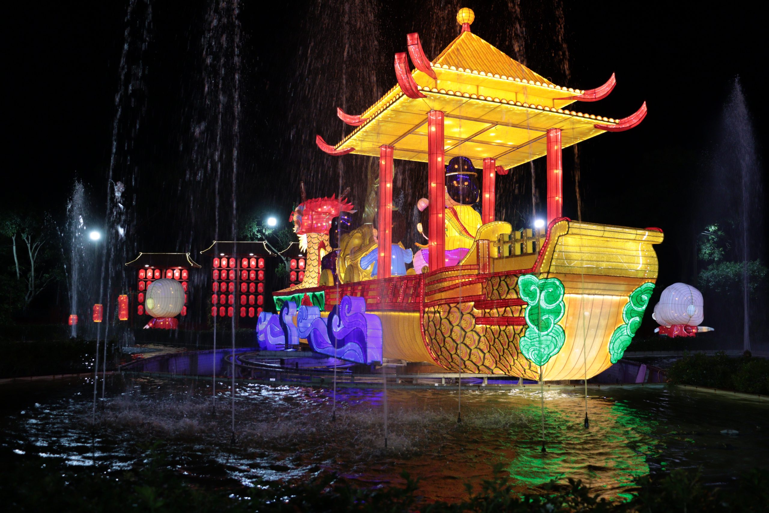 🏮音乐喷泉将于除夕夜一直持续到农历正月初九和元宵节,每晚都将进行两场表演,分别在晚上8时和9时举行哦~