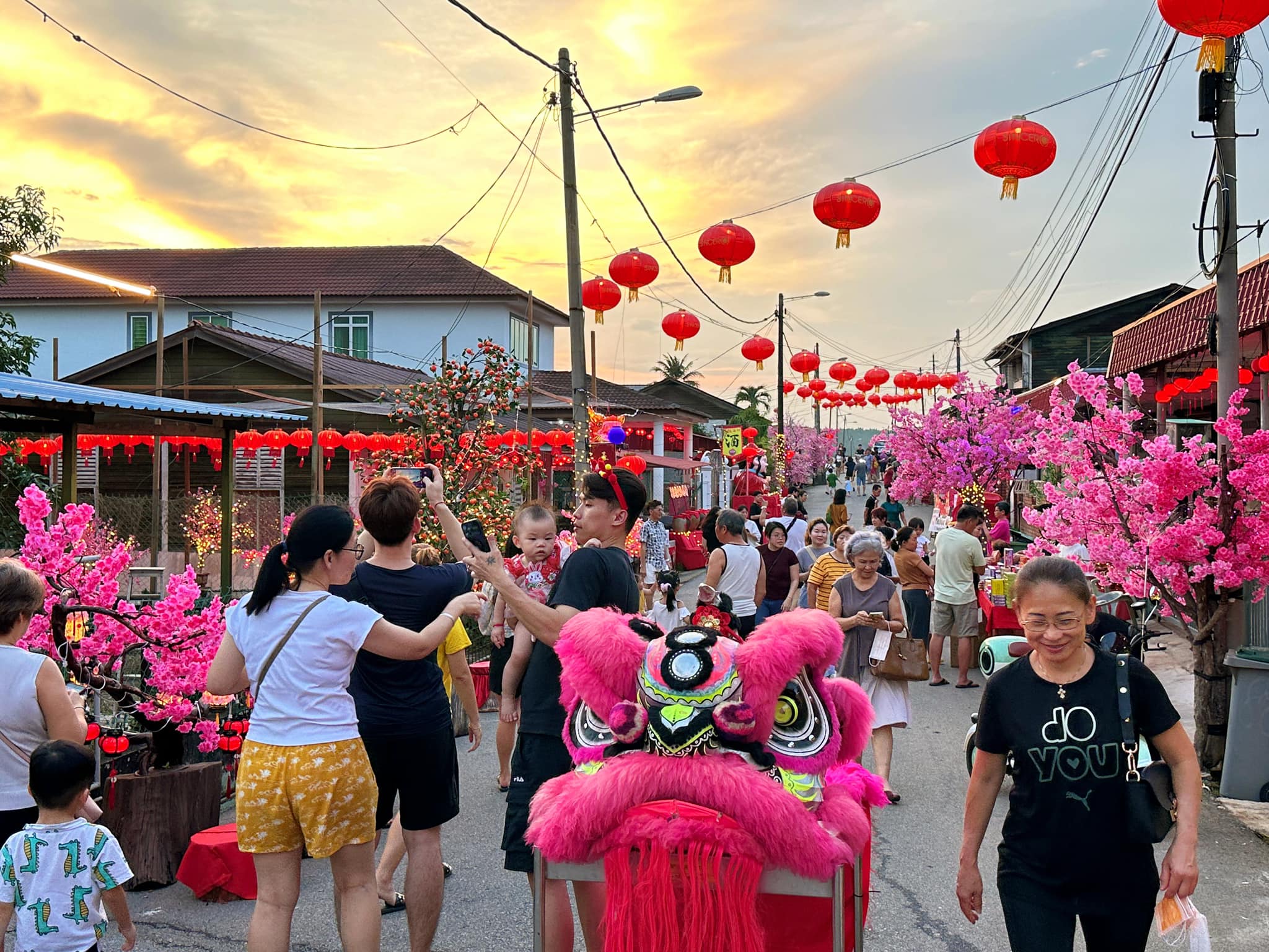 🏮“梅花街”是村民们倾心打造的作品,整条街道布置了大量粉色梅花和装饰物,如龙、财神爷和黄金,呈现出绚丽多彩的新年景象!