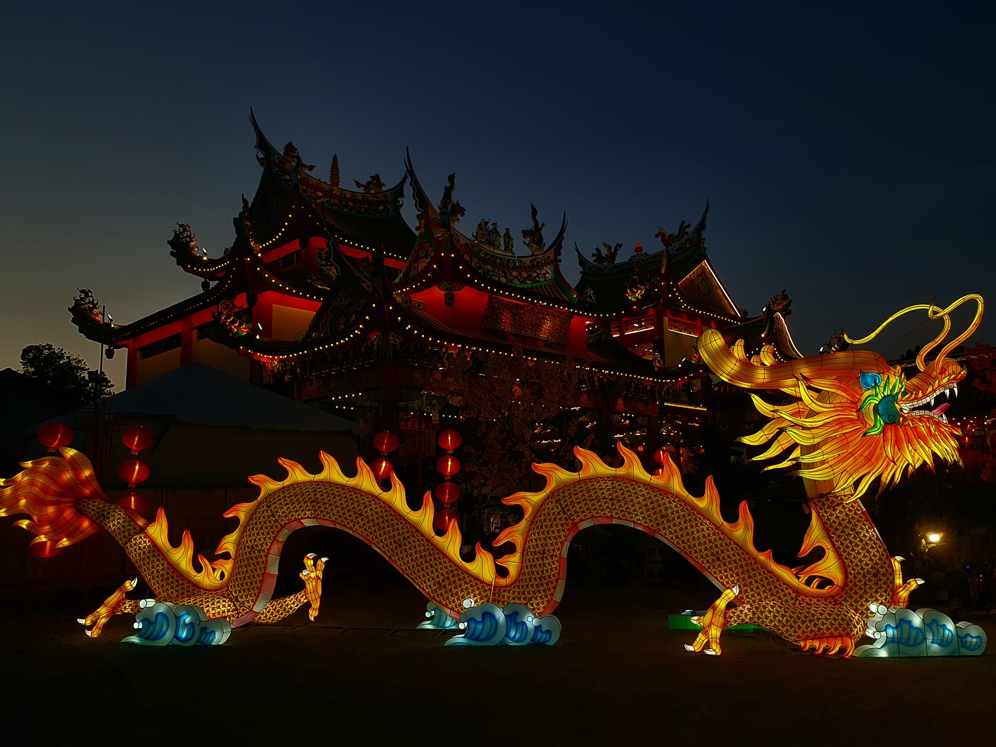 🏮今年天后宫特别迎合龙年,推出了“龙腾盛世,吉祥龘龘”主题的龙形彩灯装饰,展出了17只大小不一的龙形彩灯。