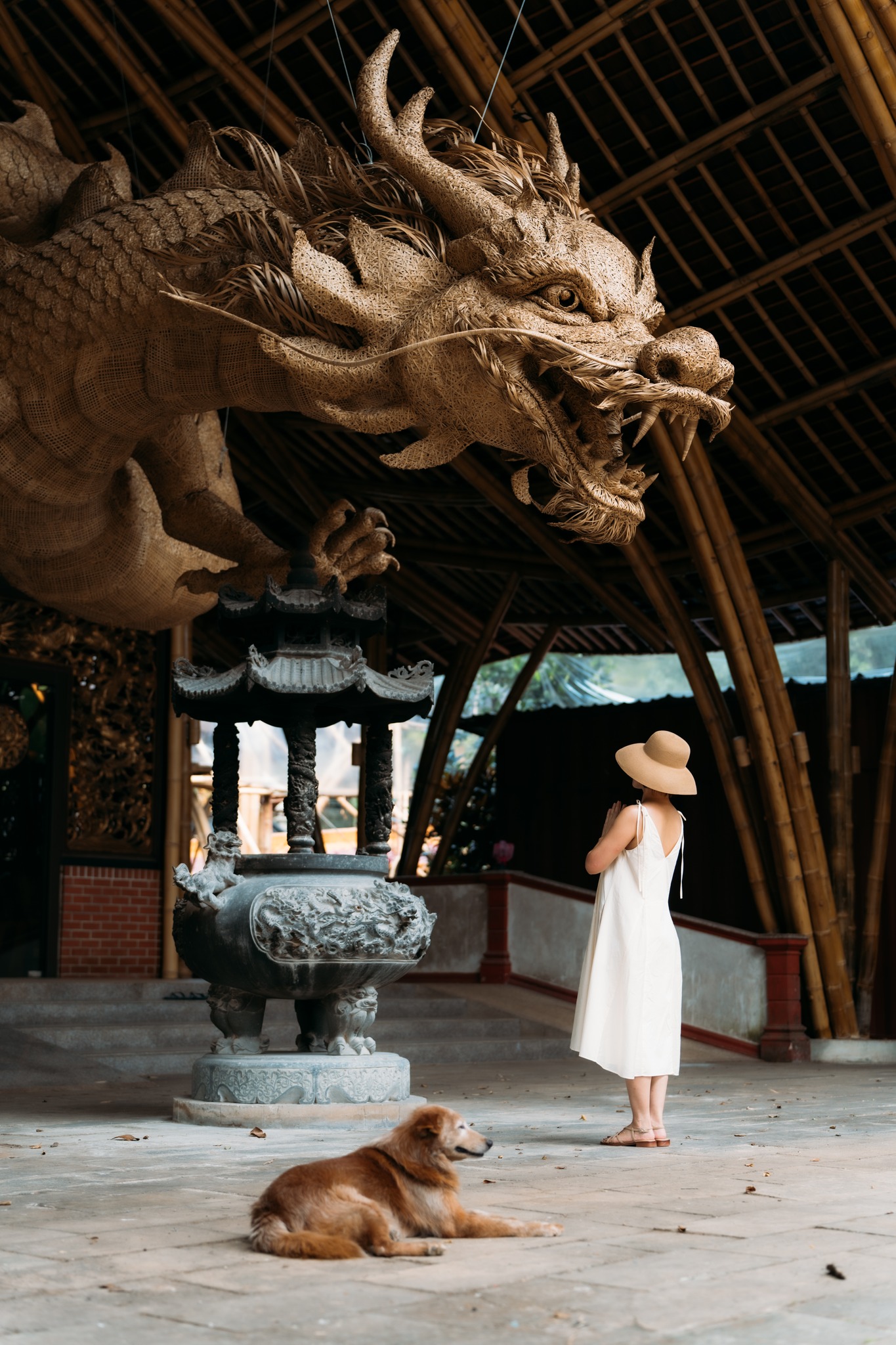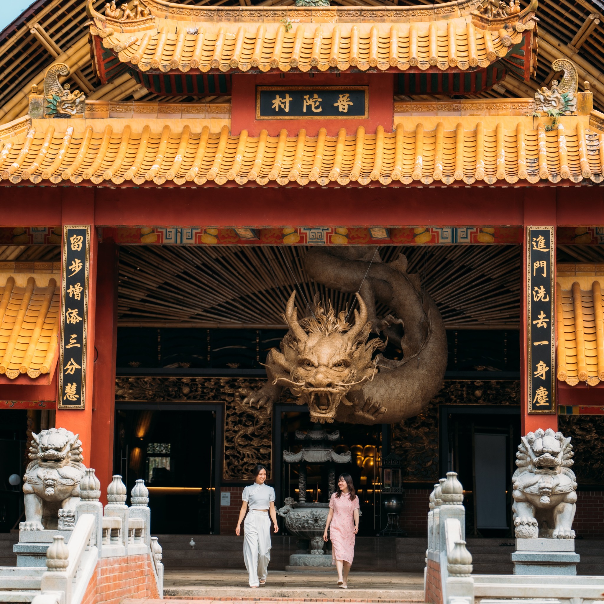 🏮这座大殿以竹子为建材,完美地融合自然与信仰,展现竹子的温暖和佛法的灵性,呈现出独特的魅力。
