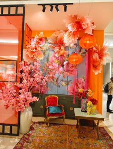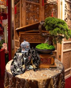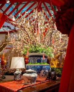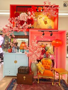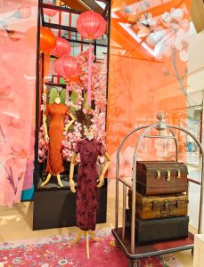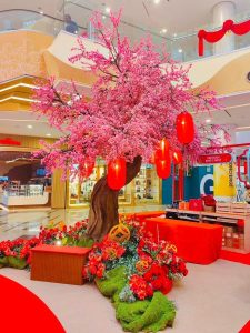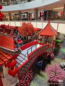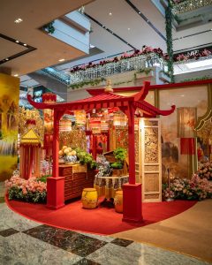 有别于一般的“大红大紫”,The Gardens Mall 将老南洋复古风、中式及欧式复古相融合,让人一走进去就像穿越回民国时期的南洋豪宅。整体布置分成很多精致的小角落,包括多彩复古中式庭院及起居室,再搭配旗袍展陈、老式留声机、中式古董家具及梅花等点缀,无不散发出复古气息的“富贵年味”。