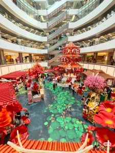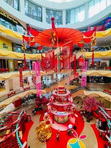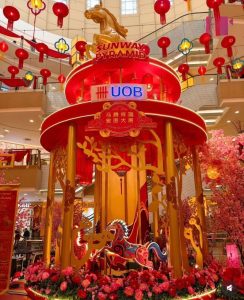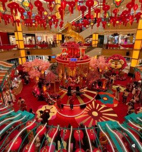 1 Utama以气势恢宏的新春装饰迎接马年的到来,整体设计融合传统中式美学与现代商场空间布局,除了红灯笼高挂、古代拱桥设计,还有巨型孔雀摆设及金色元素点缀其间,营造出喜庆而不失典雅的节庆氛围。