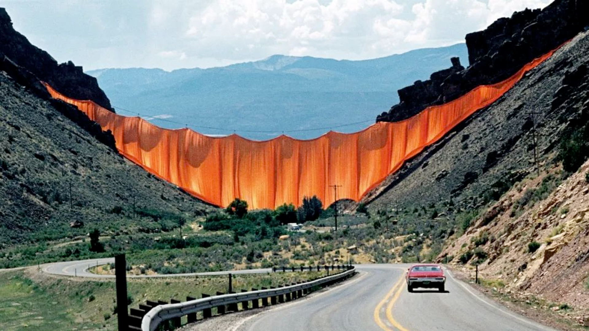两人也曾在美国科罗拉岛的山谷里,拉起一张长达381米高111米橙色的幕布 ,与两侧的山脉形成强烈的视觉冲突。