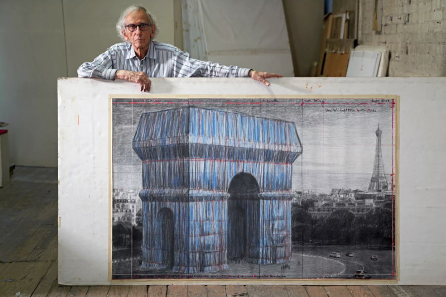 这次“包裹”凯旋门的策划早在1961年已萌芽,当他们于1985年包裹巴黎新桥后,一直希望能再回到巴黎实践名为《L’Arc de Triomphe, Wrapped》 的计划,他们甚至早已把设计草图画好。