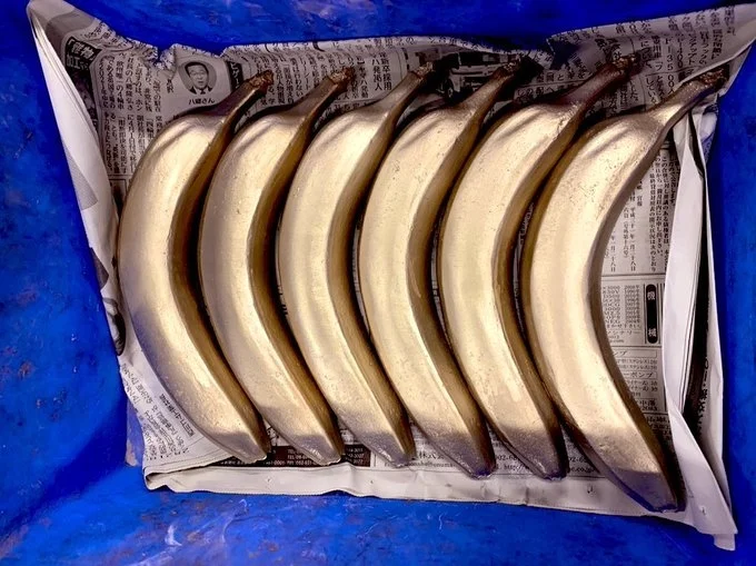 厂商说,2019年他们把菲律宾产香蕉内部金属化处理,将大眾所看到的一般铁锤制成香蕉造型,制作全球唯一的蕉锤,每支大小及轮廓不一样,受到不少人欢迎。