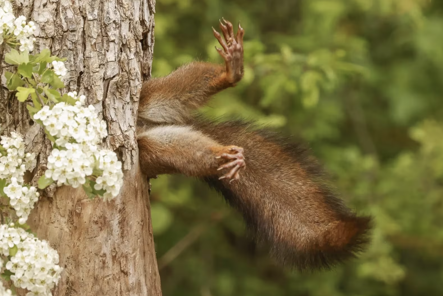 意大利摄影师米尔科·马尔凯蒂所拍到的《卡住的松鼠》,打败了9000个作品,荣获今年总冠军。他在意大利巴尼亚卡瓦洛一座公园,定格一只松鼠似乎被卡在树洞里的搞笑瞬间。
