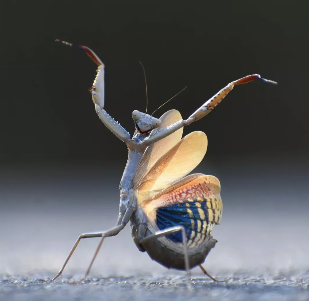 西班牙摄影师何塞·米格尔在公路停车时拍下的《弗拉门卡螳螂》,赢得昆虫类别奖。