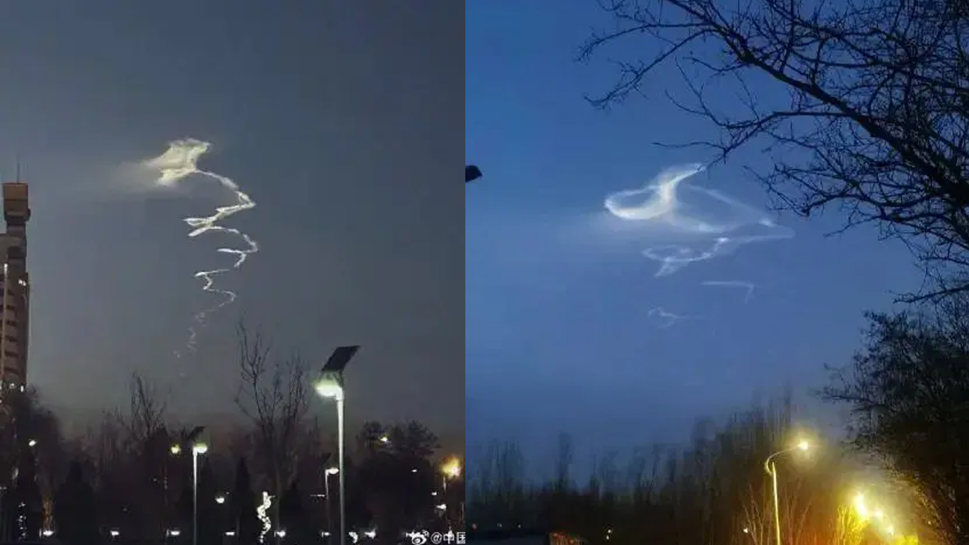 《航空知识》此前报道,这种现象通常是火箭或导弹发射时产生的火箭云,气象学上称为夜光云,由直径约100纳米的微小水冰晶体组成。
