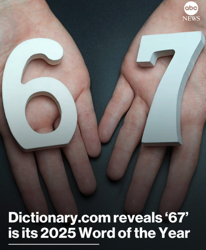 是的,没错!美国网上词典Dictionary.com最近公布“年度词汇”,而这组年度词汇就是——“67”这组数字。