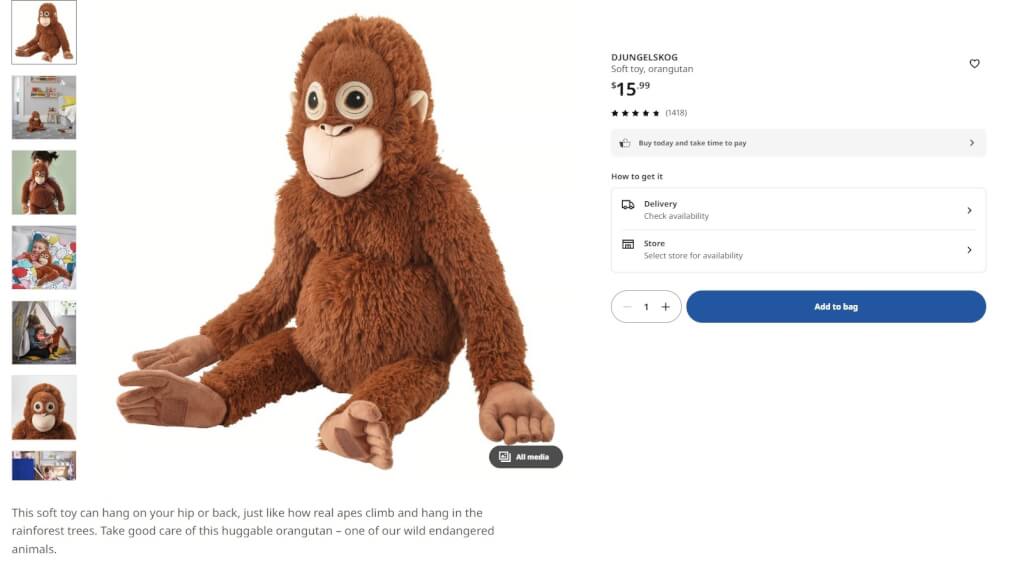 这款来自IKEA、售价约16美元(约62令吉)的红毛猩猩玩偶,原本就是热销商品。随着Panchi君的可爱身影在社群媒体疯传,美国、日本、韩国等地陆续传出售罄消息,澳洲也几乎卖到见底。
