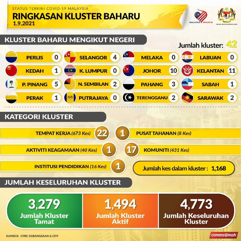 📌今日新增42个新感染群,职场感染群22个、社区感染群17个、宗教、教育和扣留营感染群各1个
