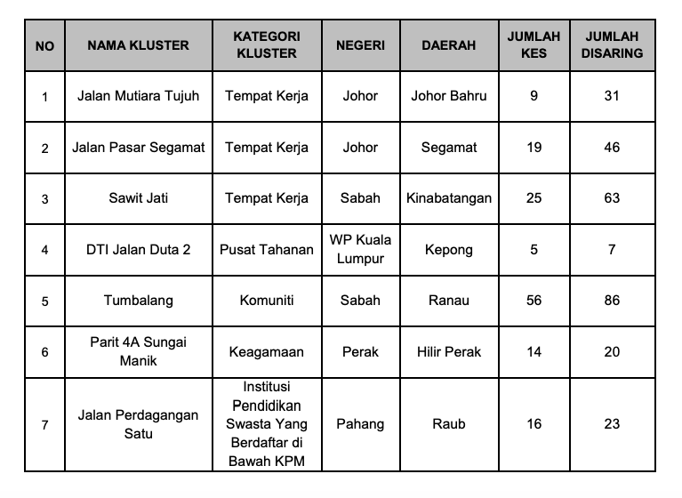 📌新增7个感染群,分别3个职场感染群、扣留营、社区、宗教和教育感染群各1个