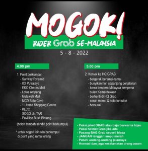 根据网上流传的罢工行动时间表,一群Grab送餐员计划在今午4时许,在多间购物广场集合,并在傍晚5时许一起出发前往Grab总公司提呈呈交备忘录。