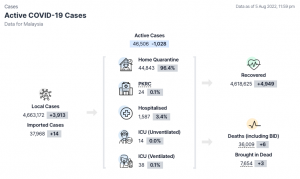 卫生部COVIDNOW网站通报,截至5日11.59pm,我国新增 #3927例,累计病例至今 #4,701,140宗。