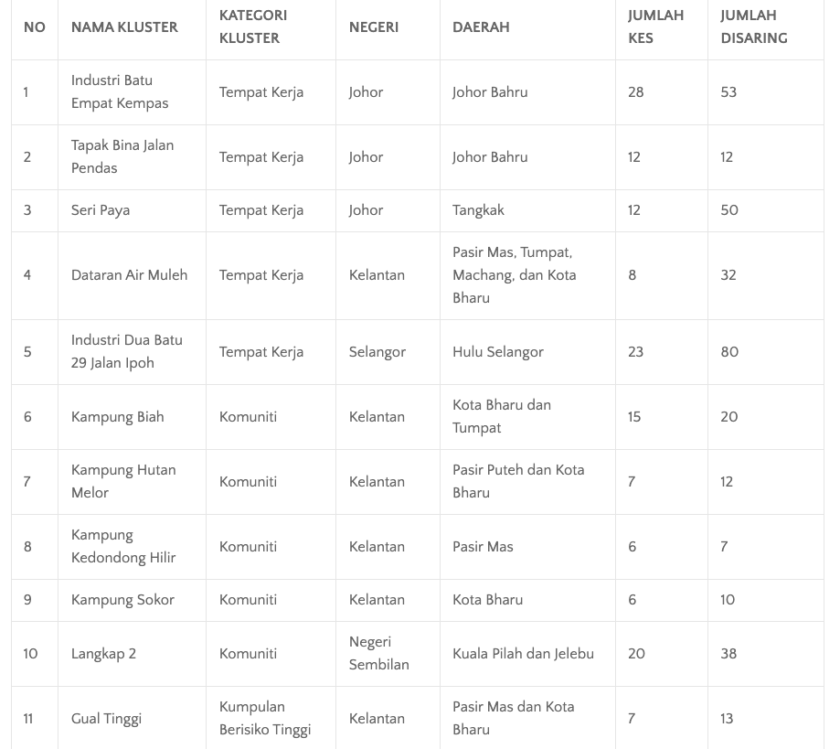 📌新增11个感染群,分别5个职场感染群、5个社区感染群及1个高风险感染群