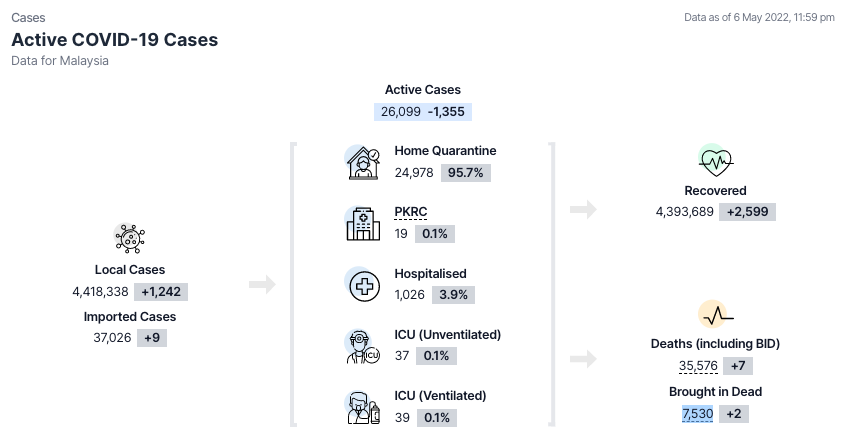 卫生部COVIDNOW网站通报,截至6日11.59pm,我国新增 #1,251例,累计病例至今 #4,455,364宗。