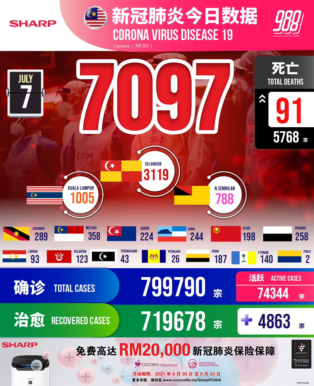 📌今天有91人死,分别来自雪州(47)、森美兰(16)、吉隆坡(10)、柔佛和马六甲各4人、砂拉越(3)、霹雳(2)、吉兰丹、登嘉楼、彭亨、纳闽和吉打各1人