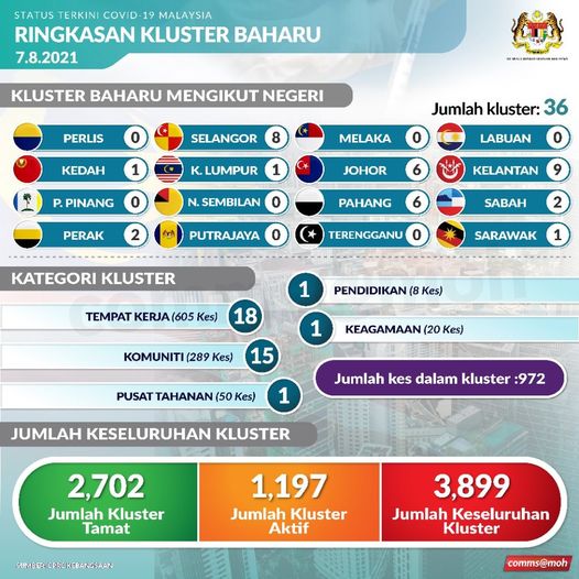 📌截至7日,活跃感染群累计348个,包括新增36感染群,职场感染群18个、社区感染群15个、扣留营、教育和宗教感染群各1个