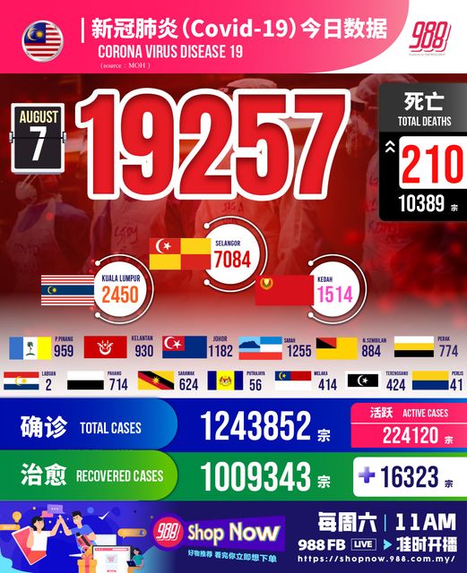 📌今天有210人死,分别来自雪州(88)、吉隆坡(33)、柔佛(28)、吉打(17)、沙巴(13)、马六甲(8)、霹雳(6)、森美兰和吉兰丹各5人、槟城(4)、彭亨、砂拉越和玻璃市各1人