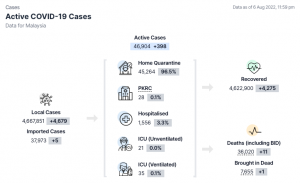 卫生部COVIDNOW网站通报,截至6日11.59pm,我国新增 #4684例,累计病例至今 #4,705,824宗。