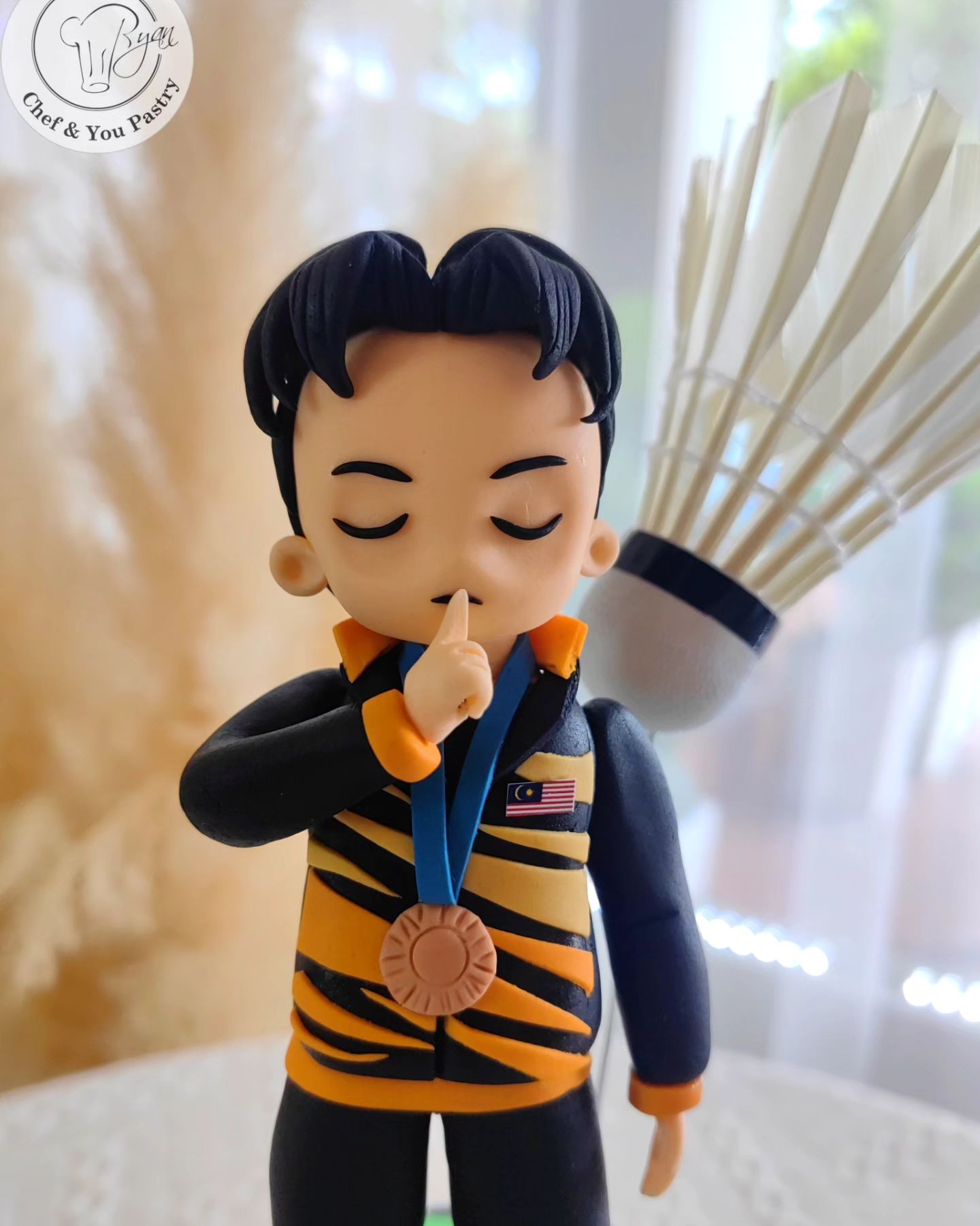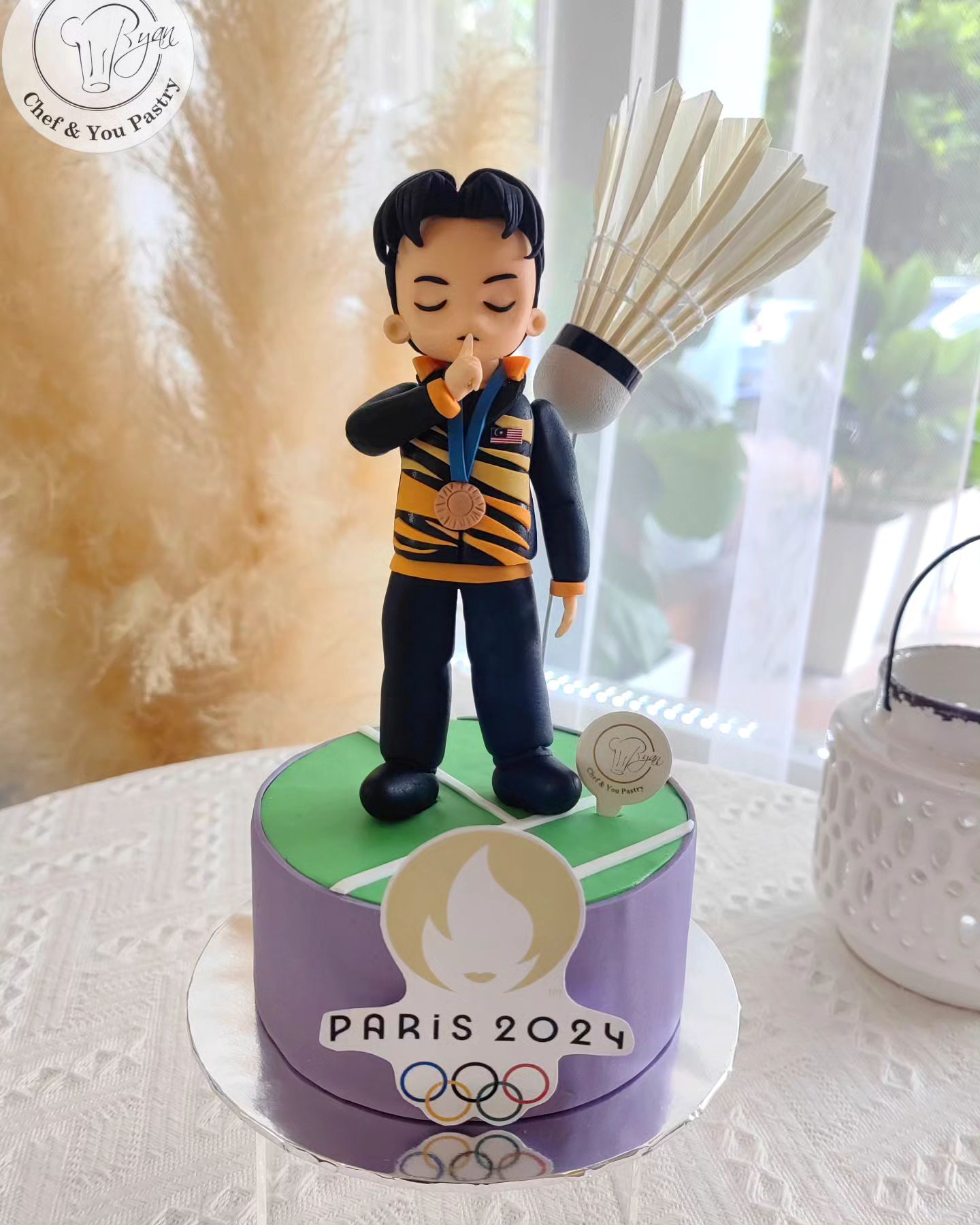 大马男单自由人李梓嘉在奥运拿下铜牌后,柔佛皇室御用蛋糕师特意制造了李梓嘉比‘安静’手势的模型蛋糕向他致意。