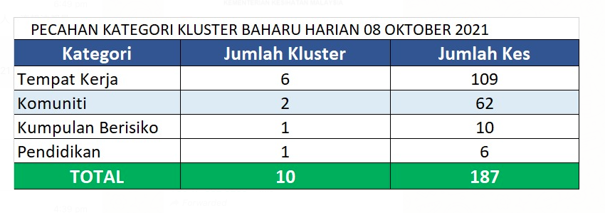 📌新增10个感染群,分别6个职场感染群、2个社区感染群、高风险感染群及教育感染群各1个。