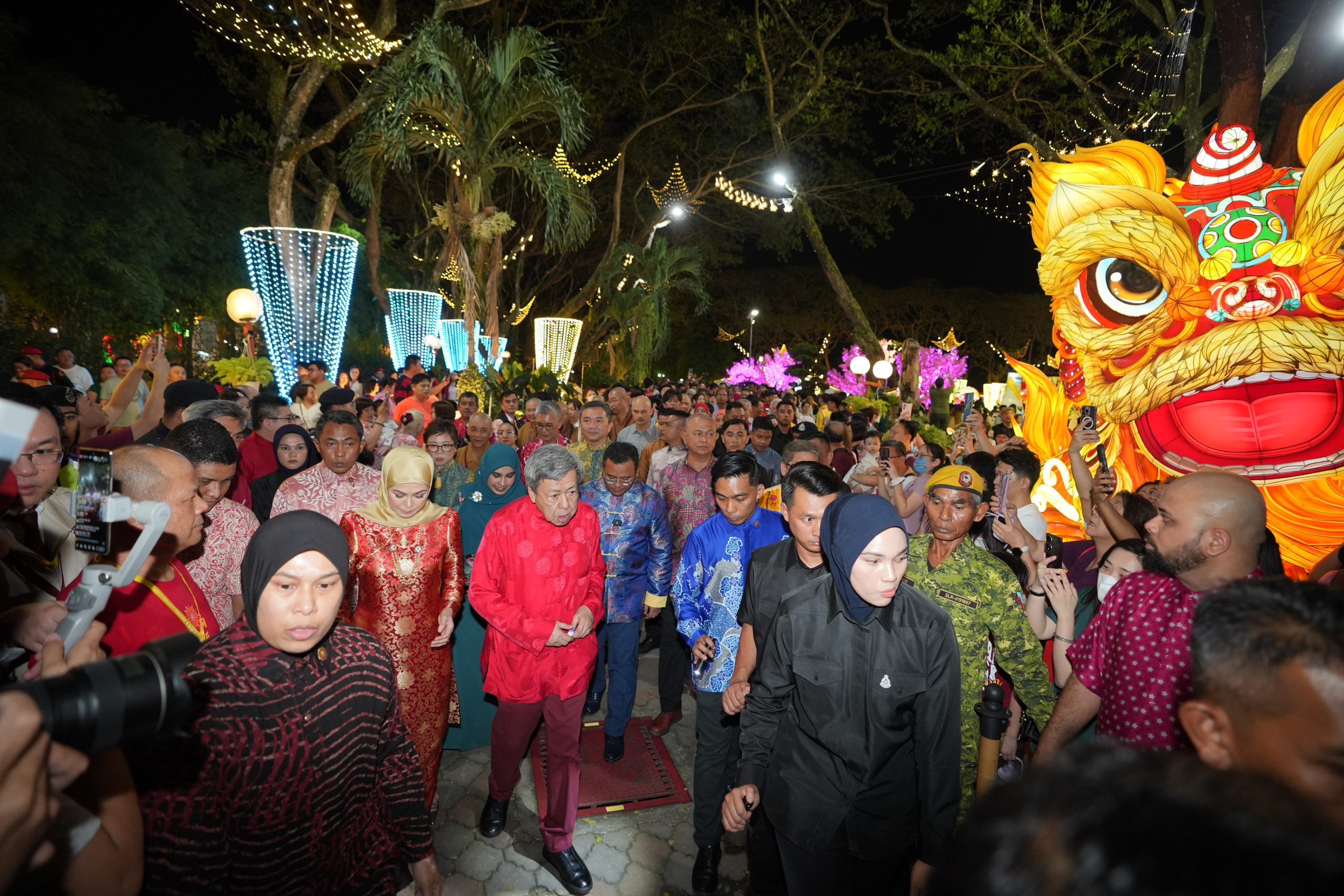 这是雪州政府首次在东禅寺举行新春团拜,也是自东禅寺创办以来,雪州苏丹首次莅临。雪州苏丹身穿红色唐装出席活动,逾3万人齐聚东禅寺,各族一同欢庆佳节。