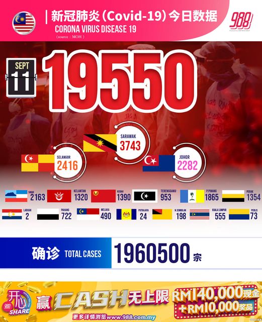 📌砂拉越今增3,743宗居首,第二雪州2,416 宗、第三柔佛2,282宗,第四沙巴2,163 宗