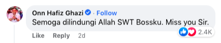 柔佛州务大臣翁哈菲兹也留言写道:“希望Bossku获得上苍庇佑,想念你。”