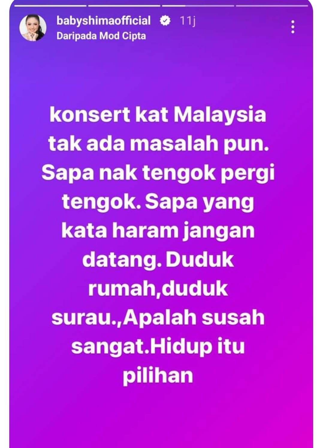 茜玛在Instagram限时动态上帖文说,在大马举办演唱会没有任何问题。