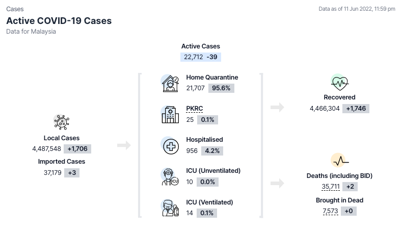 卫生部COVIDNOW网站通报,截至11日11.59pm,我国新增 #1,709例,累计病例至今 #4,524,727宗。