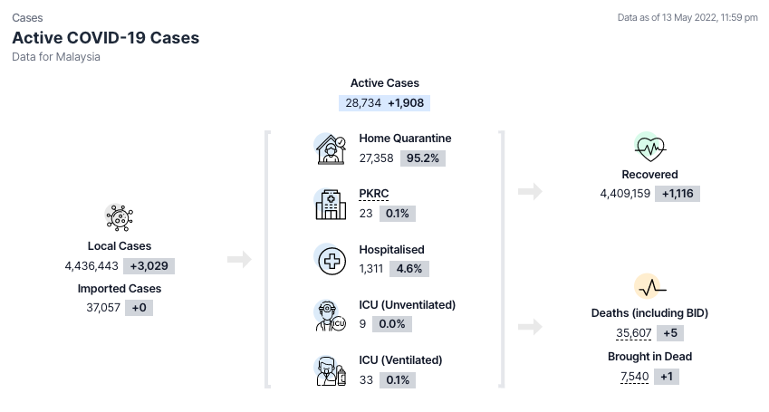 卫生部COVIDNOW网站通报,截至13日11.59pm,我国新增 #3,029例,累计病例至今 #4,473,500宗。