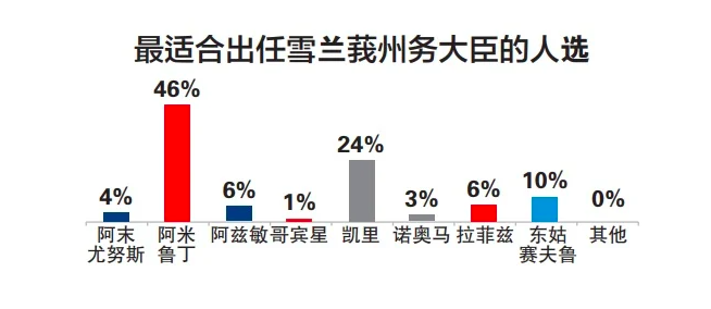 在雪州大臣人选方面,原任大臣里阿米鲁丁备受好评,75%的受访者认为,若希盟再次执政,应该再度由阿米鲁丁担任大臣;在8名政治人物中,谁最适合担任雪州大臣的人选,阿米鲁丁获得46%支持排在第一。