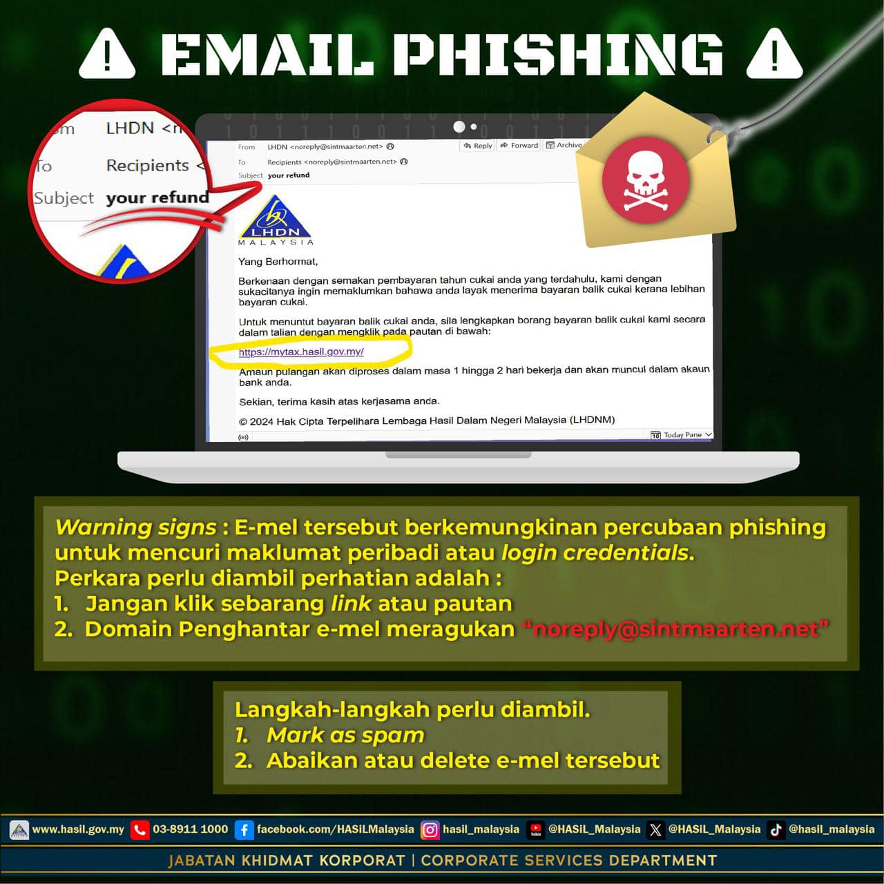 内陆税收局在脸书发文,促请民众提高警惕,勿被网络钓鱼电邮所骗。