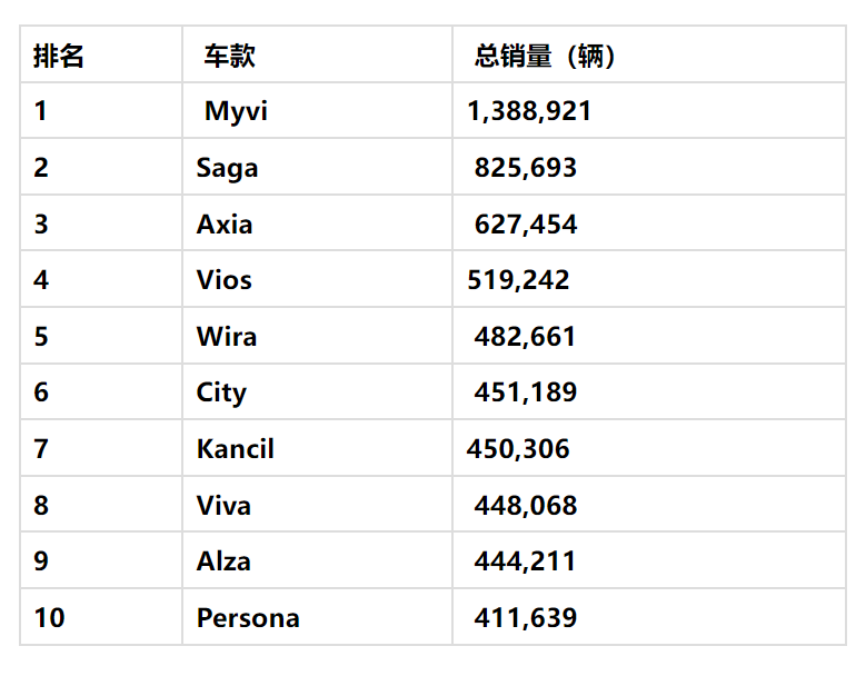 大马汽车市场10大畅销车款(2000年至2023年8月31日):