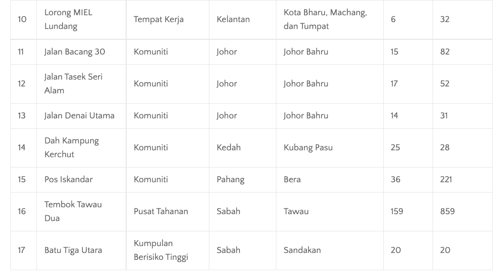 📌今天有153人死,分别来自雪州(82)、吉隆坡(17)、森美兰(14)、柔佛(10)、吉打(8)、彭亨(6)、马六甲(5)、沙巴、槟城、布城各2人、登嘉楼、砂拉越、吉兰丹、霹雳和纳闽各1人