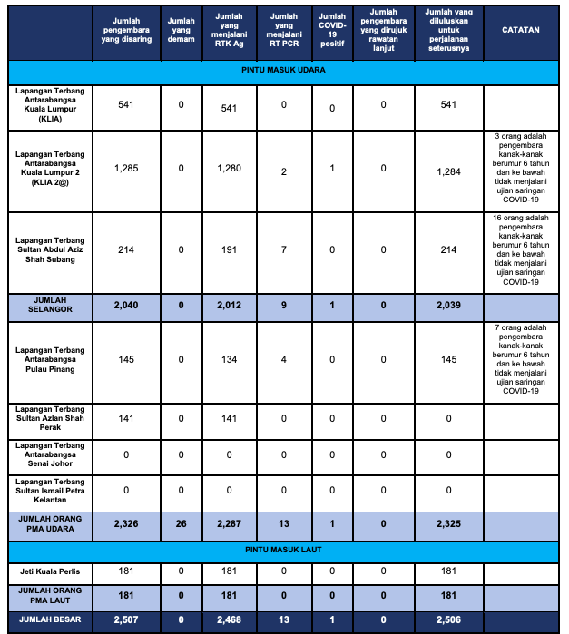 📌在浮罗交怡旅游泡泡计划下,截至18日12pm,共筛检2507人,当中1人确诊