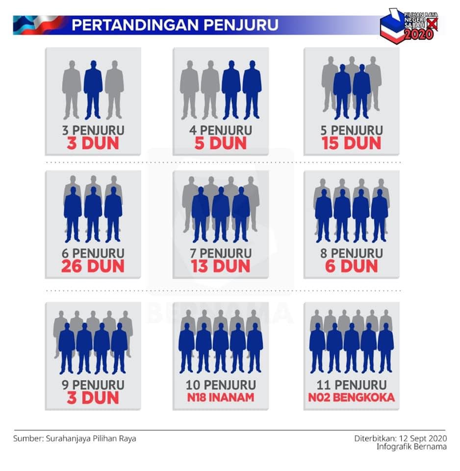 沙巴第十六届州选举提名结束,73个州议席全部打多角战,从三角战到最多的十一角战,战情可谓是前所未有的激烈!