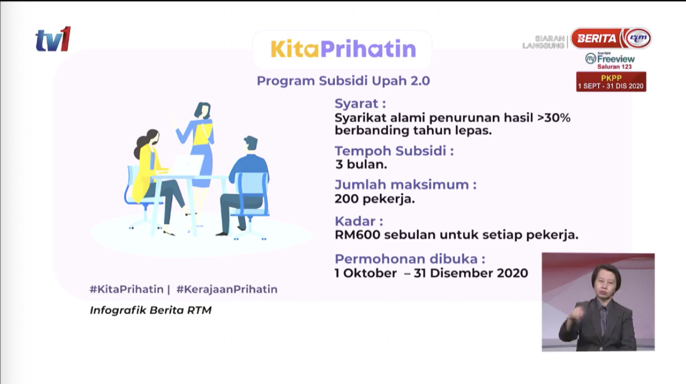 首相慕尤丁宣布,政府将通过落实“我们关怀”(Kita Prihatin)额外援助计划,包括薪金补贴2.0、国家关怀援助金2.0(BPN2.0) 、微商特别援助金等措施,进一步带动及振兴国内的经济。