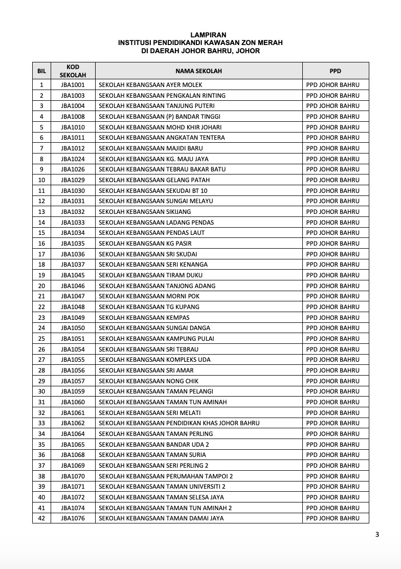 随着新山县疫情持续增加,教育部是在今晚发出文告,依据政府之前的指示,一旦成为疫情红区,学校就必须停课的指令,宣布新山县内所有各级学校都必须停课。