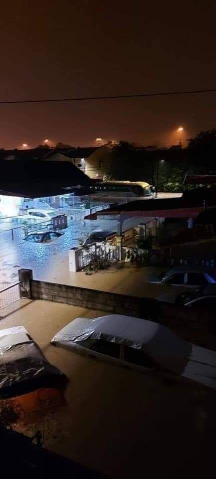 《东方日报》报道,凌晨12时许下了一场豪雨,造成森州多个地区包括暗邦岸、拉杭、亚沙、晏斗、万茂、武吉遮当、汝来、文丁等突发水灾,当中以甘榜地区居多,一些低洼地区更是淹5尺高,车辆被没顶、据称还有一名男子遭洪水冲走。