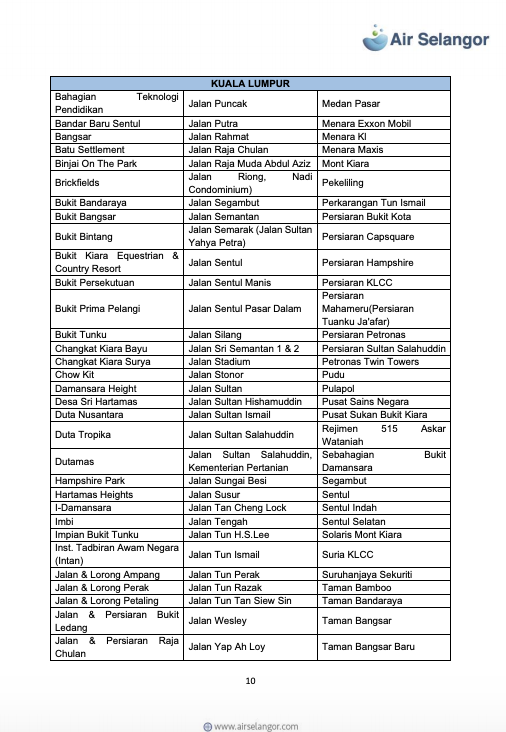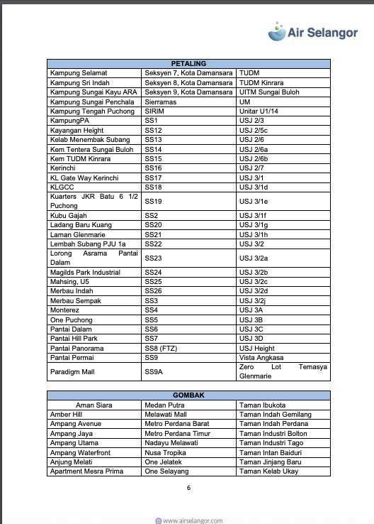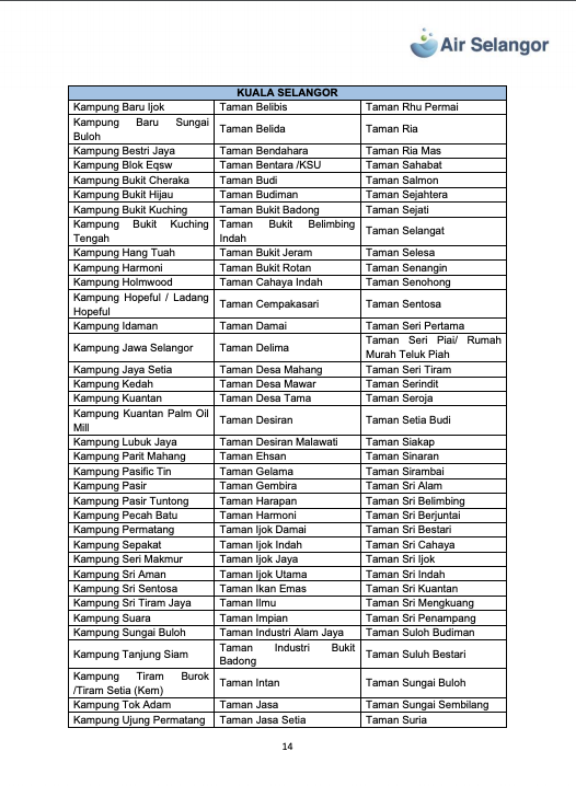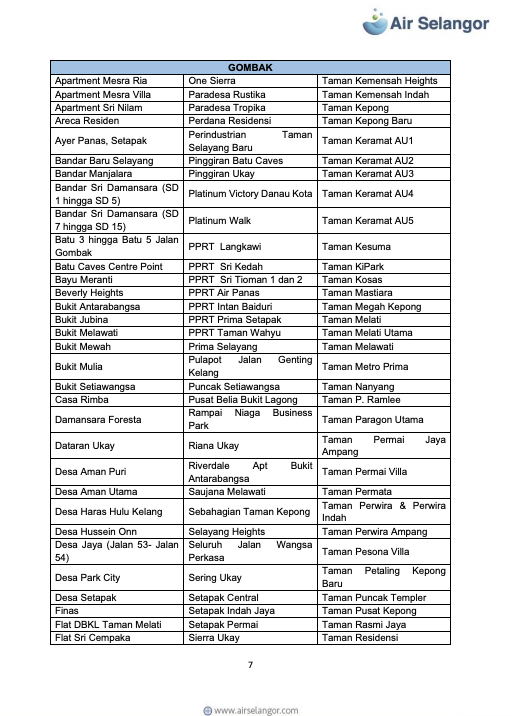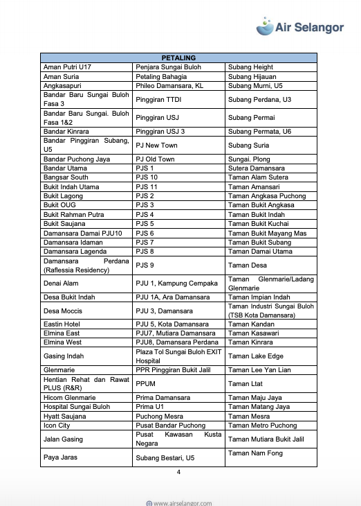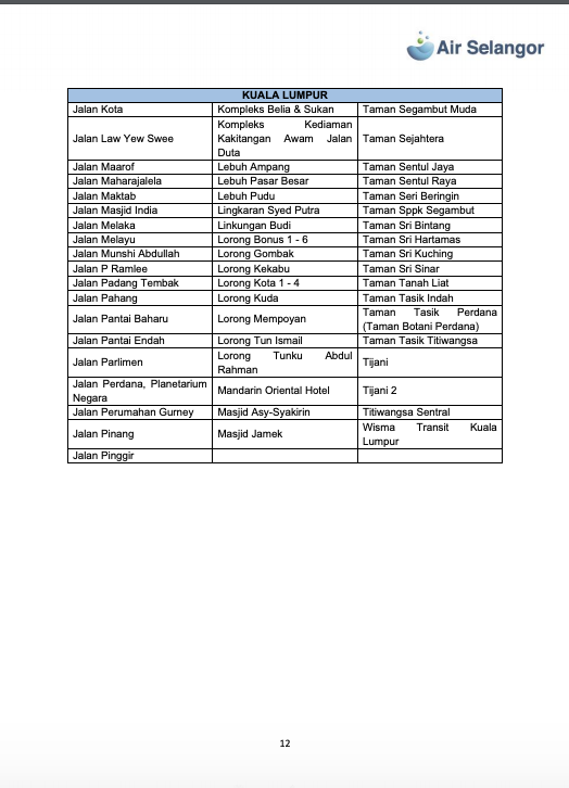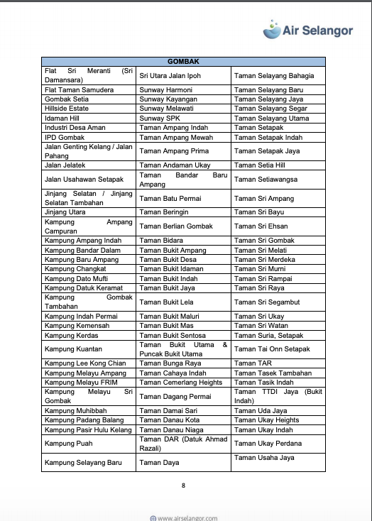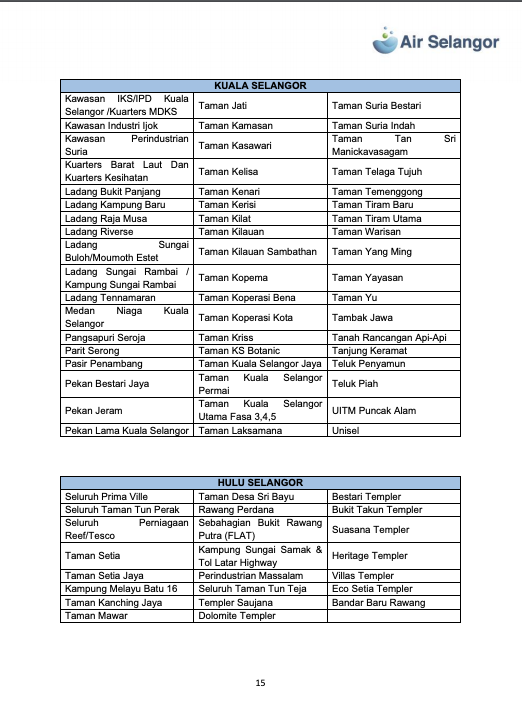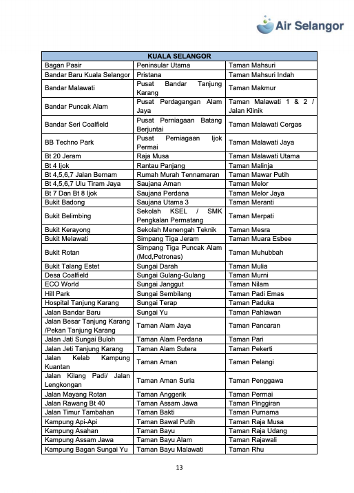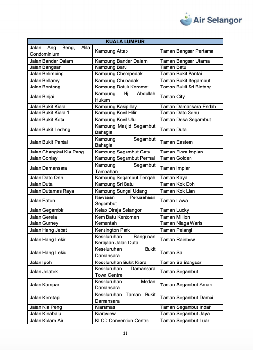 雪河文告指出,雪隆7县1279个地区,共113万9008水用户再受影响,这些地区分别是:吉隆坡、八打灵、巴生/莎阿南、瓜雪、乌雪、鹅麦及瓜冷。